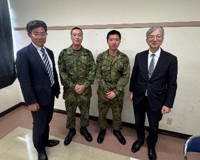 また、3日は同じ横須賀市の武山駐屯地で、高等工科学校及び第31普通科連隊の研修などを行いました。この際、東京都出身隊員の代表者との懇談の機会もあり、東自家族会を代表して平素の勤務への感謝とご慰労を行いました。
